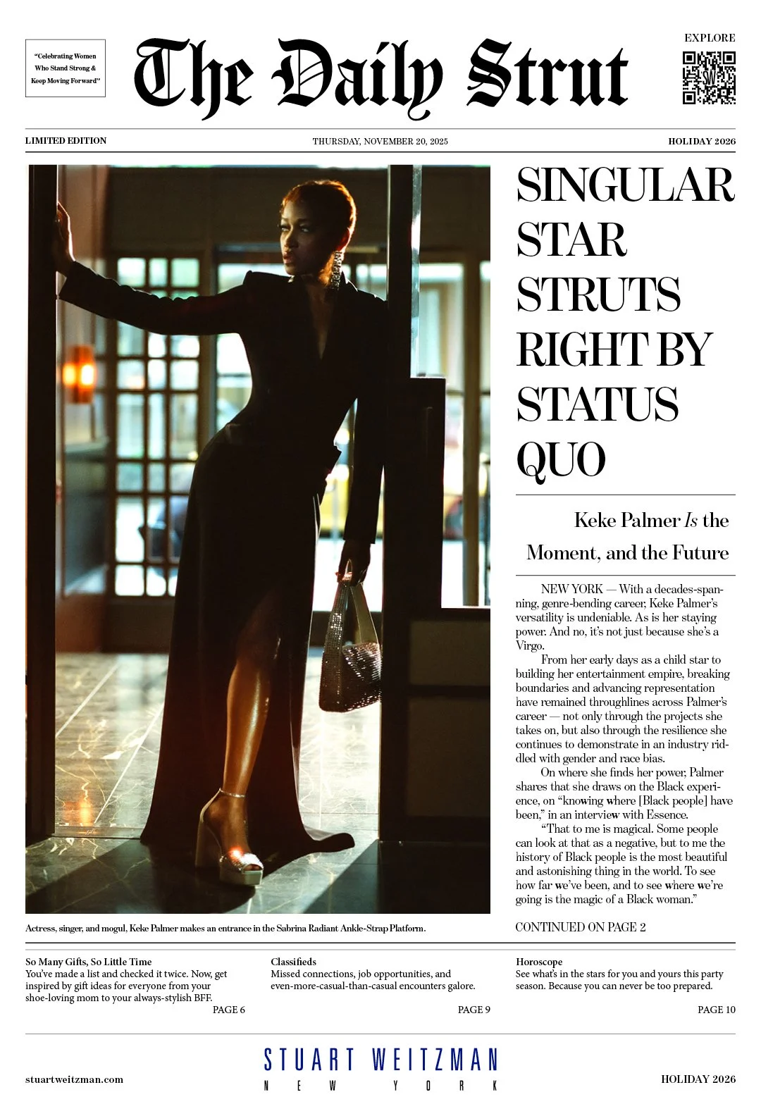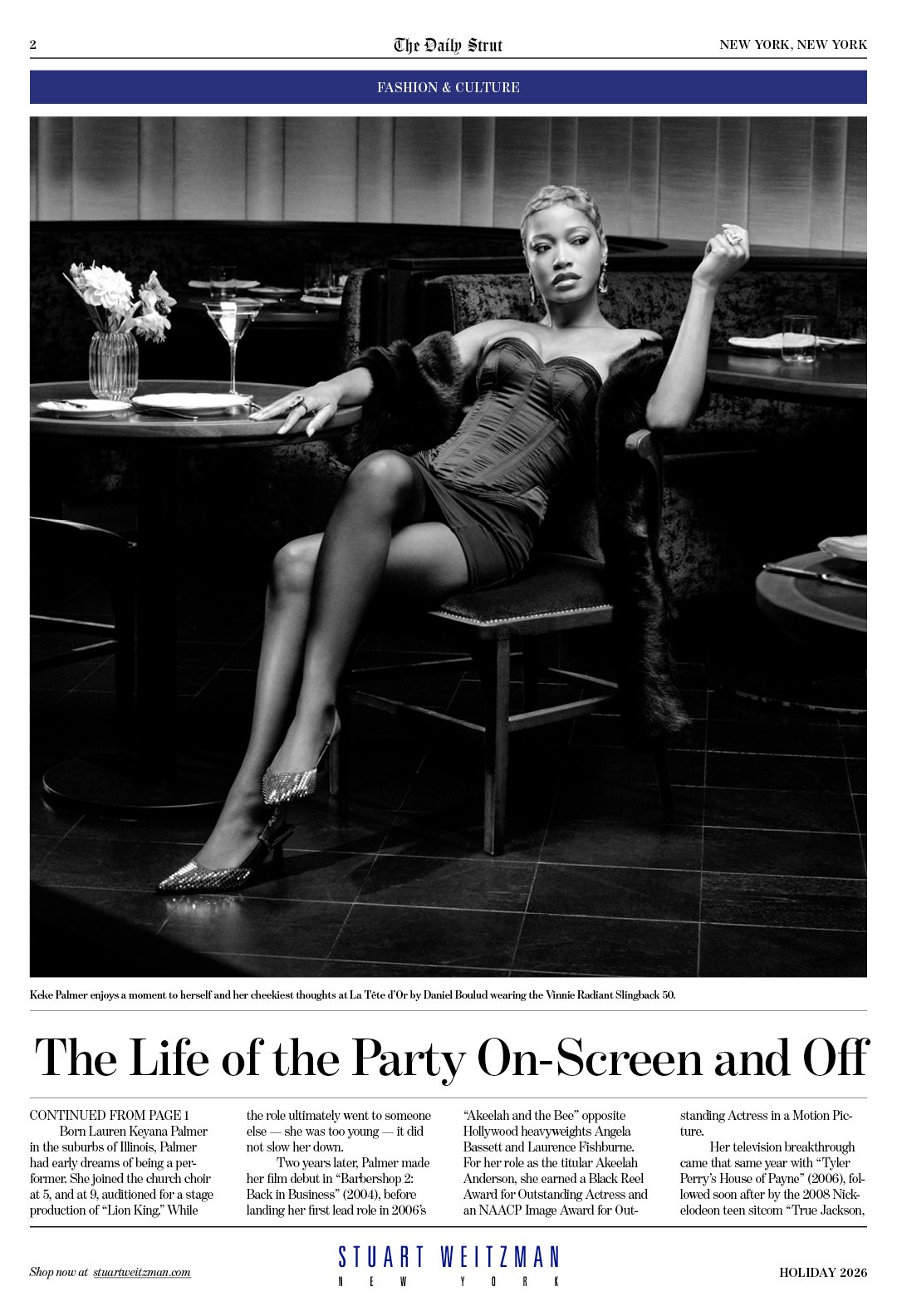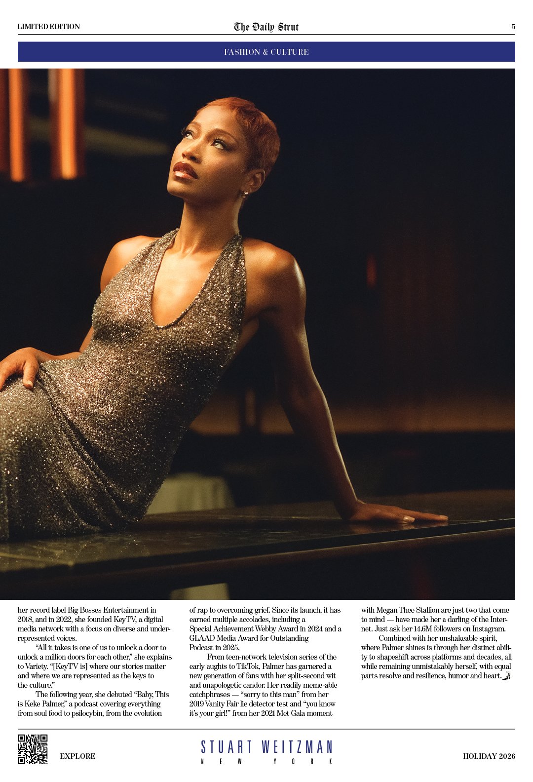 With the goal of continuing to build upon the momentum of Fall 2025 and centering this high-achieving, highly introspective (but not serious) woman and connecting the campaign with the high glitz and glamor of the collection, I built the campaign around the talent, Keke Palmer, taking herself out to celebrate the New Year. The cultural practice of reflection and goal-setting for this time lent itself naturally to the introspection and intellectuality that this woman approaches her life with.